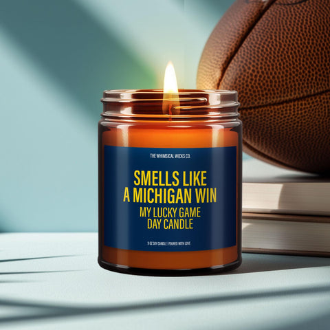 Home/Collections/Smells Like A Michigan Win Candle, Football Candle, Michigan Wolverines, Game Day Decor, Sport Themed Candle, Housewarming Gift